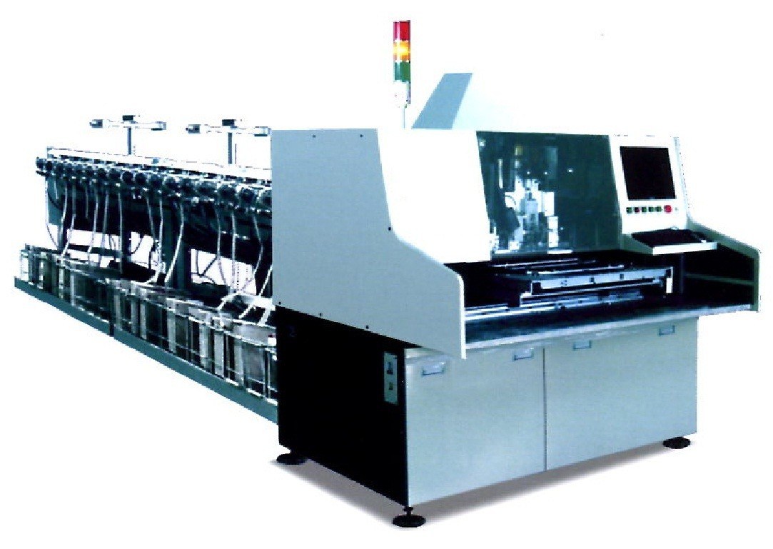 Característica: Consista no sequencer axial da segunda geração e na máquina axial da inserção. Arranje em seqüência os componentes da fita no transporte chain como o programa e alimente a máquina da inserção diretamente, nenhuma necessidade fazem na fita outra vez. A cabeça da inserção é constante, a tabela giratória é móvel, inclui vertical ou o sentido horizontal, assegura precisamente componentes da inserção no PWB. O software de aplicação é projetado por nossa empresa, controla toda a operação através de um computador.